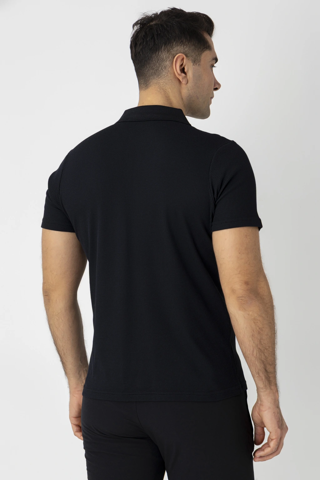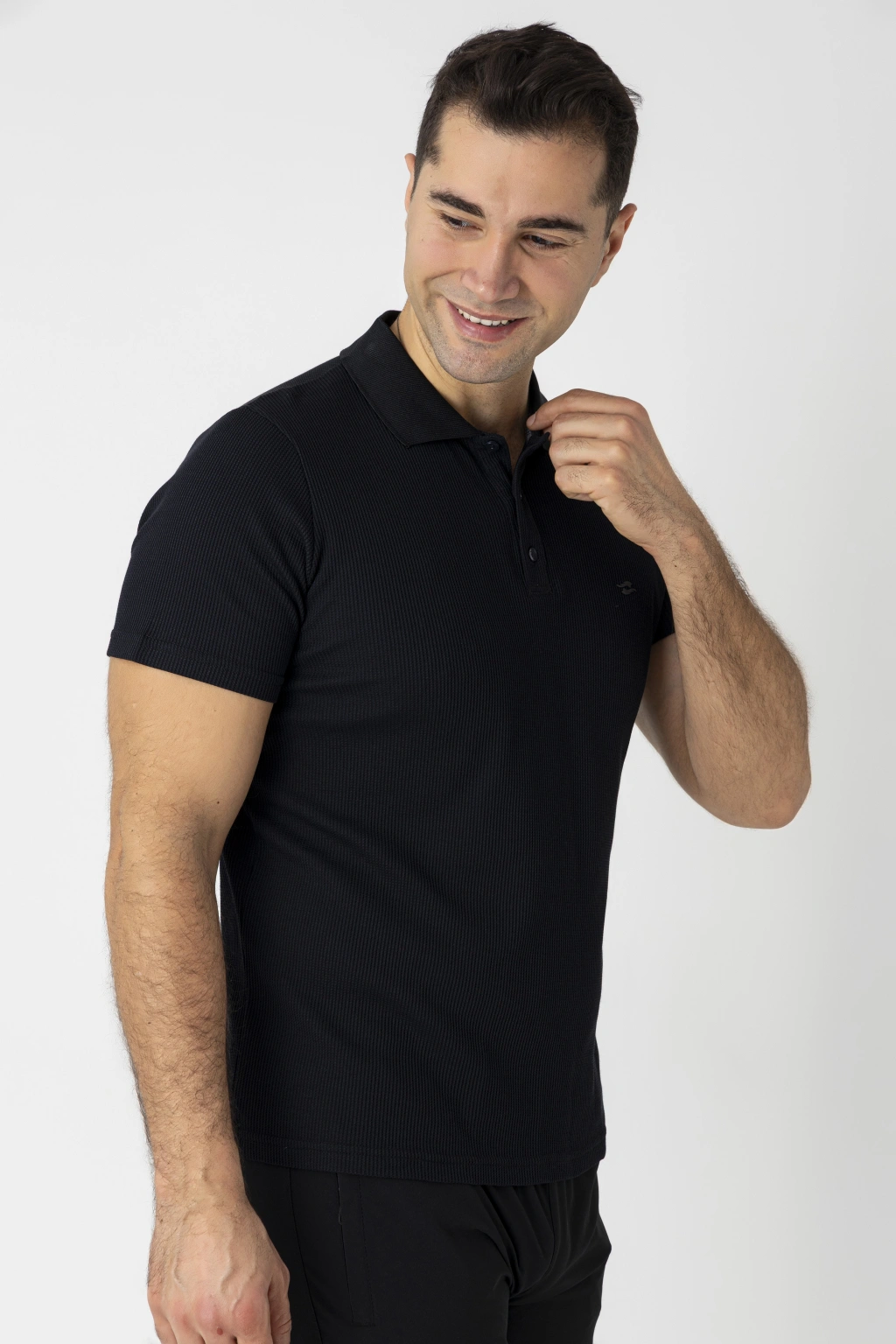 Crozwise Pamuk Pike Waffle Polo Yaka Tişört 7152 siyah