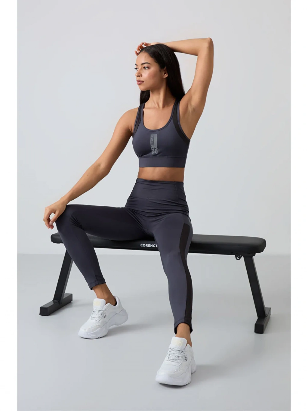 Tommylife Antrasit Polyester Esnek Standart Fit Performans Kadın Tayt Takım - 95332